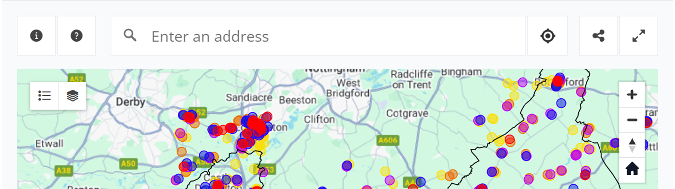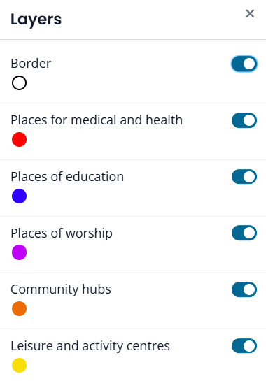| Categories filter | ![]() | Clicking/tapping this tool displays the different categories, that are also displayed when the Info icon is clicked/tapped, however you are able to turn off and on which markers are displayed on the map, this can be used to make the map easier to navigate. There is further information on this tool in the add your marker section of the guide |