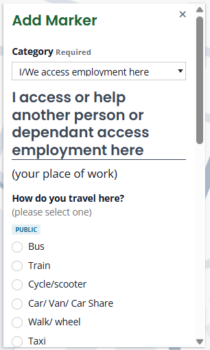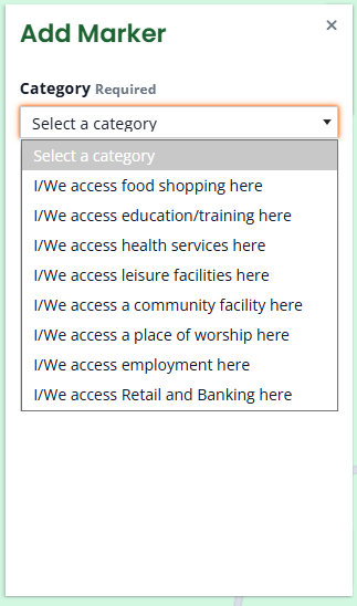 Once a category is selected a form will appear within the add marker text box, the form appears as below.